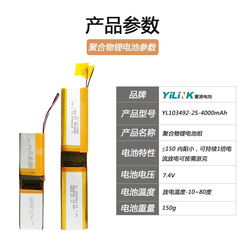 產品編號:YL103492-2S規格型號:103492-2S1P-4000mAh-7.4V標稱電壓:7.4V標稱(chēng)容量:4000mAh充(chōng)電溫度:0℃~+45℃放電溫度:-10℃~+75℃產(chǎn)品(pǐn)尺(chǐ)寸:10*34*200mm產品重量:160g