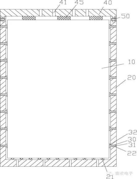 本新型專利公開了(le)一種無線(xiàn)智能便(biàn)攜式(shì)彩色打印機電池,包(bāo)括(kuò)聚合物鋰電池電芯和主殼體,所述聚合物鋰電池電(diàn)芯插套在(zài)主殼體(tǐ)中(zhōng),主殼體的底(dǐ)部側壁上具有多個(gè)緩衝(chōng)凸起,聚合物鋰電池電芯的底麵壓靠在緩衝凸起上,主殼體的左右兩側壁上(shàng)具有多個(gè)透氣通(tōng)孔(kǒng),緩衝柱(zhù)插套並卡置在透氣(qì)通孔中,緩衝柱伸入主殼體的一端壓靠在聚(jù)合物鋰電池電(diàn)芯的左右(yòu)兩側壁上,緩衝柱(zhù)上具有軸向通孔(kǒng),主殼體(tǐ)的上端設有(yǒu)殼蓋,殼蓋的(de)底端麵壓靠在(zài)主殼體的頂端(duān)麵上,殼蓋的底端麵上具有緩(huǎn)衝塊,緩衝塊壓靠在聚合物(wù)鋰電池電芯的頂(dǐng)麵上。它采用聚合物鋰電(diàn)池電芯,其體積小,同時其安裝在(zài)的主殼體和殼蓋連(lián)接拆卸方便,同時,其透氣性好,對聚合物鋰電池電芯保(bǎo)護性好。