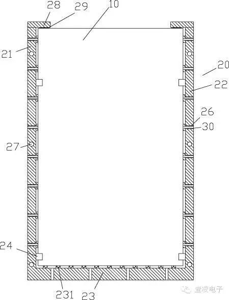 本新(xīn)型專利公開了一種(zhǒng)智(zhì)能(néng)點讀筆LED光源聚合物鋰(lǐ)電池,包括聚合物鋰電池電(diàn)芯和(hé)保護殼,所(suǒ)述保護殼(ké)由左側部、右側部和底邊部組成,左側部和(hé)右側部(bù)分別成型在底邊部的左右兩(liǎng)側的頂麵上,左(zuǒ)側部和右側部的內側壁上成型有多個前夾(jiá)持部和後(hòu)夾持部,聚合物鋰電池電芯插套在左(zuǒ)側部(bù)和右(yòu)側部之間,聚合物鋰電池電芯夾持(chí)在前夾持部(bù)和後夾持部之間,底邊部的底(dǐ)部側壁上具有多(duō)個(gè)緩衝凸起,聚(jù)合物鋰(lǐ)電(diàn)池電芯的底麵壓靠在(zài)緩衝凸起上,左側部和右側部上具有多個透氣通(tōng)孔,緩衝柱插(chā)套並卡置在透氣通孔中。它(tā)采用(yòng)聚合物(wù)鋰電池電芯,其體積小,同時其(qí)安裝(zhuāng)在保護(hù)殼中,使得當點讀筆摔落時不(bú)會使聚合物鋰電池電芯受損,提高使用壽(shòu)命。